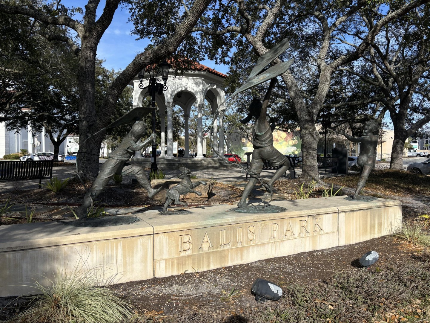 Acres: 0.2 Located in The Square at San Marco, this beautiful park honors the memory of longtime San Marco residents Sheffield and Abla Balis. Mrs. Balis funded the initial development of the park and her estate paid for later improvements. History: Balis Park is located in the middle of The Square at San Marco – a commercial district in south Jacksonville. Development of the San Marco subdivision began in 1925, and one of the first commercial structures (completed in early 1927) was a quaint, Spanish-style Gulf service station, in the middle of the Square. Gulf Oil later replaced the station with a modern version, and the City purchased the parcel in 1984 for development as a park – which the San Marco Preservation Society and local merchants envisioned as a center piece for the Square. Sheffield and his wife Abla Balis were longtime residents of San Marco, and Mrs. Balis funded the park’s development, in memory of her husband who passed away in 1976. The dedication ceremony took place in January 1988, and later improvements included a sound system, the bronze sculpture Windy Days, and landscaping, which were funded by the estate of Abla Balis and the City.