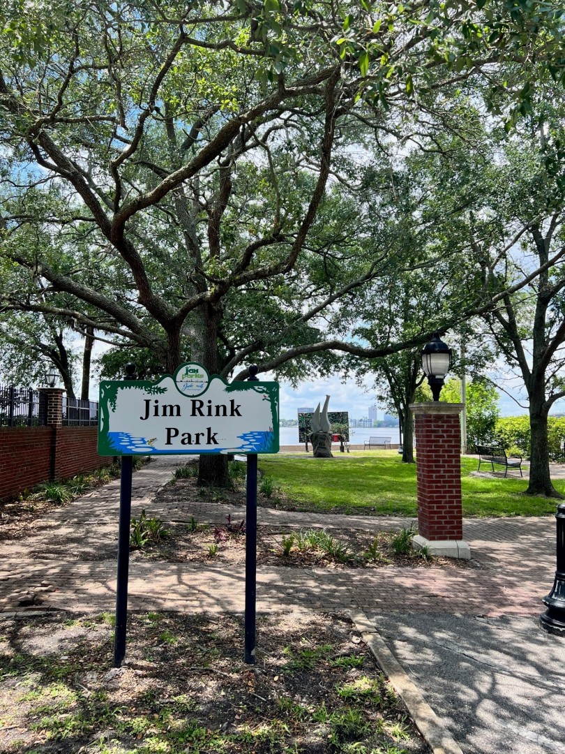 This small park is located at the end of Cedar Street in the San Marco area. Renovations include an original Enzo Torcoletti granite and marble sculpture titled "Coming Home" and a bench for viewing the waterway.