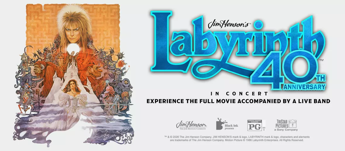 Experience Jim Henson and David Bowie’s original masterpiece “Labyrinth” like never before with Labyrinth in Concert! Watch the full movie on a massive HD screen, accompanied by a combination of live rock band, synth, percussion, and fantastic lighting effects that transport us to the Goblin City. Feel the power of the music from the cult classic live! Don’t miss this exceptional event that brings beloved characters, epic music, and breathtaking visuals from the Labyrinth universe to life in a heart- warming fusion of film and live music.